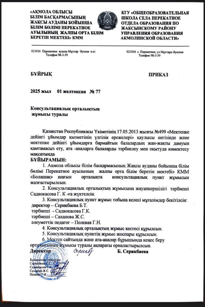 КГУ «Общеобразовательная школа села Перекатное отдела образования по Жаксынскому району управления образования Акмолинской области»
